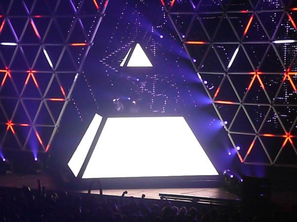 Et oui, ca manque de prestation « live »! On sent le show bien réglé, préparé même, allez, je me risque : pré-enregistré sur du abelton mais sans aucune place pour de l’impro, mis à part peut être quelques effets et un équaliseur histoire de dire que quand même, on fait un truc :p La vrai force des Dafts n’a jamais été et ne sera jamais dans la prestation live. Mais finalement, c’était quand même géant, show sublime, son énorme, et puis eux font les robots, nous les humains, après tout… 🙂