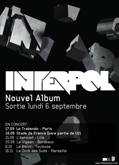 Interpol annule sa date le 16 septembre à Caen et jouera le 17 septembre au Trabendo, Paris