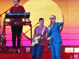 Même si on se demande comment le chanteur a eu l’idée du col roulé et du costume alors qu’il fait plus de 30 degrés, on s’est déhanchés avec un plaisir toujours renouvelé sur leur pop lumineuse qui nous donne envie de faire des chorées entre copines.