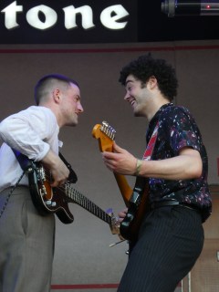 Malgré ce soleil idiot, cette heure ridicule (17:50) et cette scène Firestone minable, le degré d’excitation est tel que j’y suis 20 minutes avant le début du concert. Il faut alors patienter, et je m’assieds contre la barrière en attendant que le temps s’accélère, tâchant de me protéger d’un astre éclatant parfaitement déplacé : s’imagine-t’on tripper sur Joy Division en été à l’heure du goûter ? Car c’est bien au groupe de Manchester que l’on pense en les voyant jouer. Et d’ailleurs James McGovern, le chanteur, avec son physique, son charisme et l’urgence qu’il semble mettre dans chacun de ses gestes, a d’indéniables points communs avec Ian Curtis.