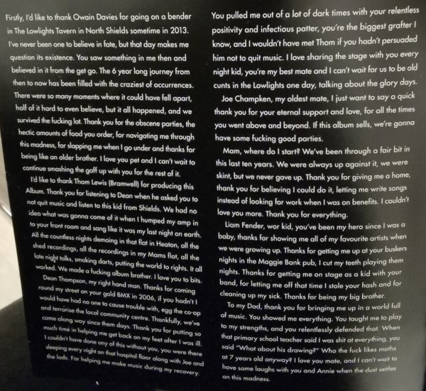 Enfin, vous voulez savoir ce qui a achevé de me faire fondre complètement ? Alors que j’avais déjà acheté le disque, à l’ouverture du livret, je suis tombée sur ces quatre colonnes pleines de remerciements plus sincères et touchants les uns que les autres, qui ont laissé entrevoir, s’il en était encore besoin, ce qu’on pourrait appeler une belle âme. Quatre longues colonnes d’une police en tout petits caractères. Quatre colonnes émerveillées et reconnaissantes. C’est con peut-être, mais ça m’a transformée en guimauve.