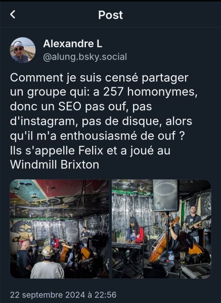 « Cette soirée, c’était un « Cello sunday » au Windmill, je m’attendais à un open mic pour finir le weekend, je me retrouve avec qui fera la scène de Primavera dans 3 ans »