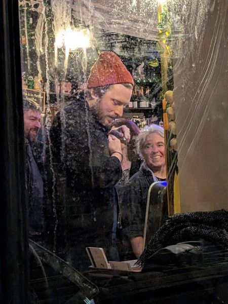 Dans ce bar en bas de chez lui, pourtant plein, on ne peut s’empêcher de penser qu’un tel artiste aurait mérité une toute autre exposition. On voudrait que l’écrin, bien que parfaitement adapté aux intimes et aux fidèles, rende davantage justice au talent de ce chansonnier comme on n’en fait plus, jongleur de mots, poète chanteur et comédien au charisme évident, formidable conteur.