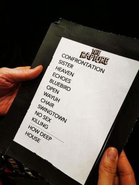 Setlist : Confrontation / Sister (saviour) / Heaven / Echoes / Bluebird / Open (up your heart) / Wayuh / Chair (that speaks) / Swingtown / No Sex (for Ben) / Killing // How Deep (is your love) / House (of jealous lovers)